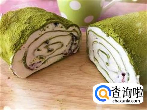 将做好的小饼一个叠一个的放好,把奶油和红豆粒放进去抹平,然后卷起来,吃的时候撒点抹茶粉就可以了,非常的漂亮好吃。