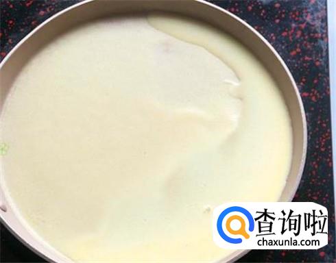 等待半小时后,平底锅加热,将面糊一小勺倒进去摊成薄饼,这样一一的做成小薄饼。这时候别闲着,把新鲜的奶油打好,并且准备一些煮熟的红豆,加上白糖拌一下。