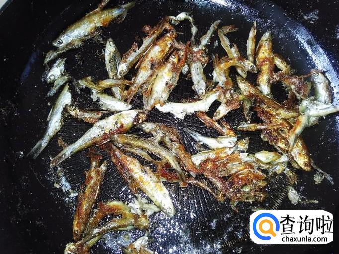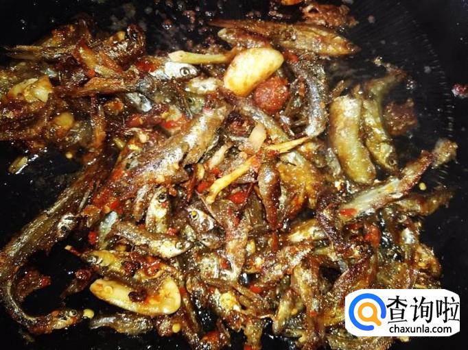 然后打开盖子翻炒一下,熄火,非常浓香好吃的小鱼就做好了。