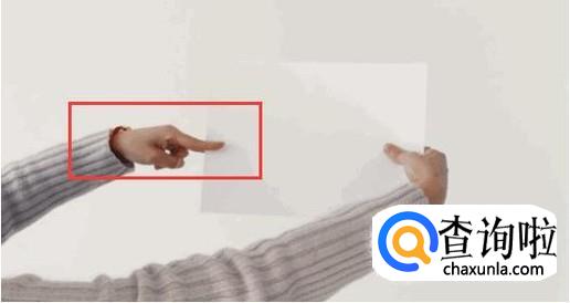 首先准备一张白纸,然后用食指以及中指夹住白纸,另一只手拽住白纸的另一端,如下图所示