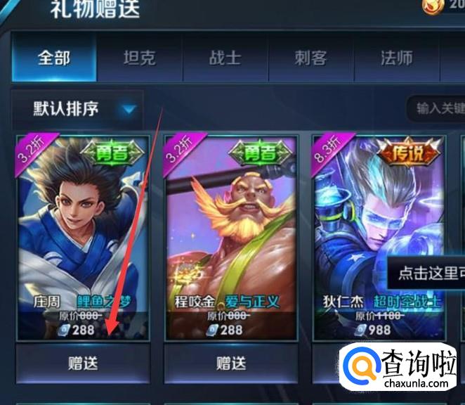 进入之后,选择想要赠送的皮肤,如图所示。