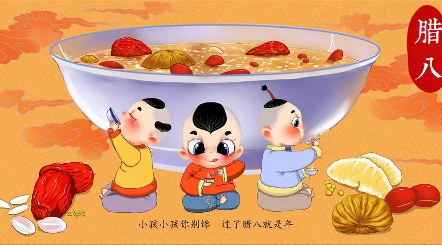 老北京民谣:小孩小孩你别馋,过了腊八就是年。腊八粥,喝几天,哩哩啦啦二十三。二十三,糖瓜儿粘;二十四,扫房日;二十五,炸豆腐;二十六,炖白肉;二十七,宰公鸡;二十八,把面发;二十九,蒸馒头;三十儿晚上熬一宿;大年初一去拜年:您新禧,您多礼,一手的面不搀你,到家给你父母道个喜!