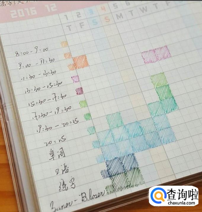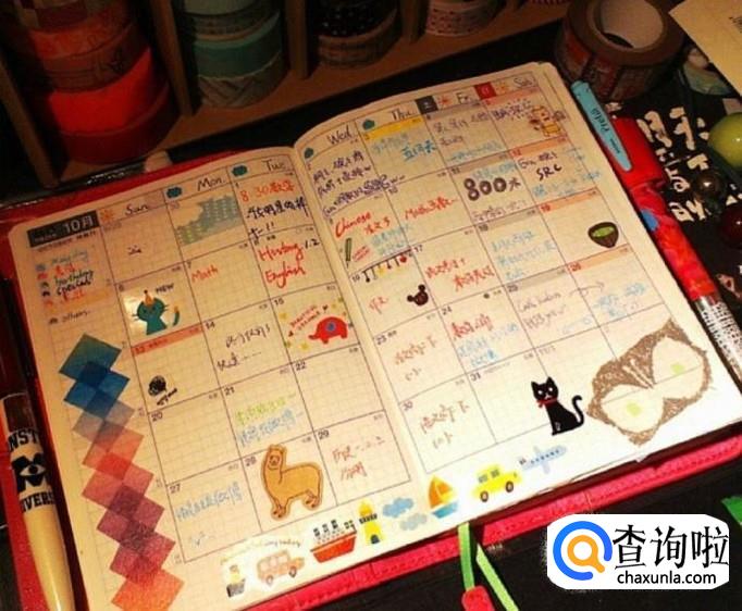 每天要做的事:手帐还有一个作用就是可以帮助你管理自己的时间,有些手帐的内芯是有时间轴的。在时间轴上写下自己每天每个时刻做的事情。