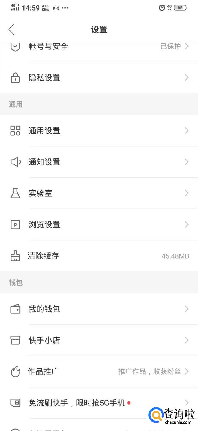 第二步,点击设置,滑动页面找到‘’快手小店‘’点击它。