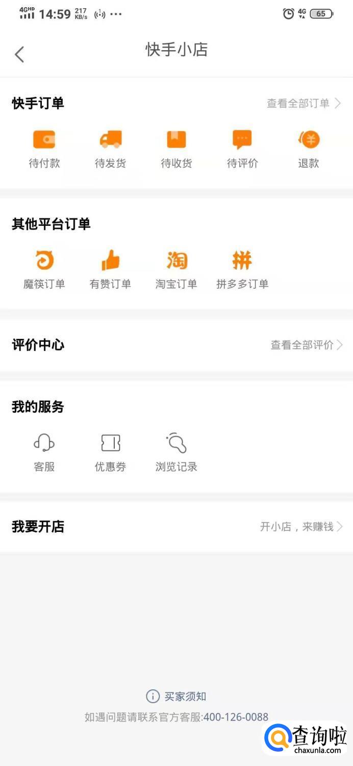 第三步,出现如下页面后,在此就能找到快手订单以及通过其他平台购买的商品订单,先看哪笔订单点击查看就可以看到物流信息了。