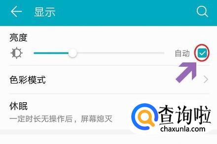 在显示页面的最上方就是关于亮度调节的,我们可以勾选最右侧的“自动”选项,这样系统会自动根据周围环境来调节亮度,当然手动左右滑动来调节也可以;
