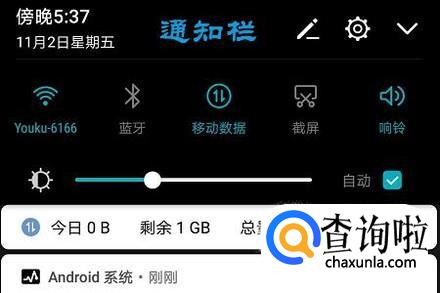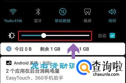 我们会发现通知栏中间位置有一个滑动按钮,它就是用于调节屏幕亮度的,往左滑动将屏幕调暗,相反的向右则是变亮的;