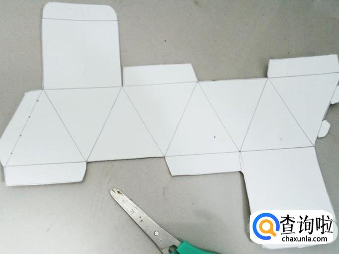 把三角形左边的两处地方,用刻刀刻一下,再把右边突出的地方对折进去。