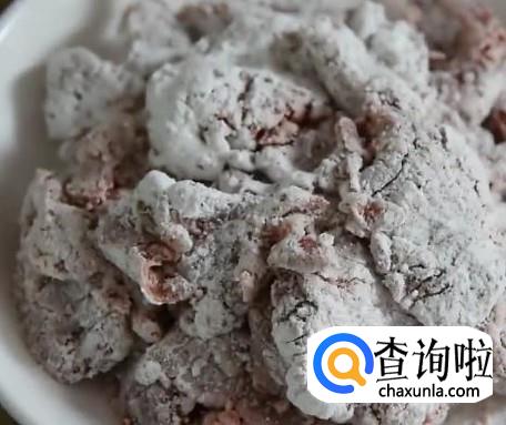 然后将切好的瘦肉裹上适量的地瓜粉。