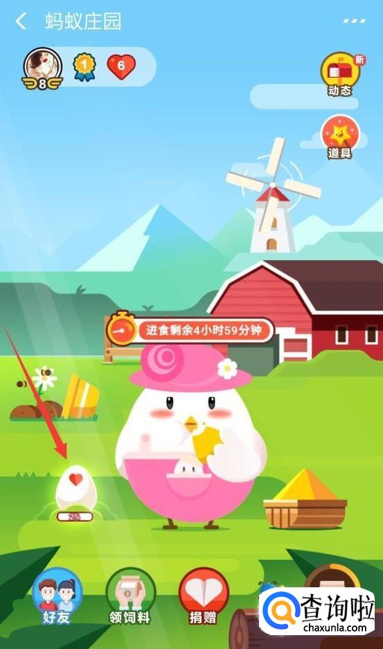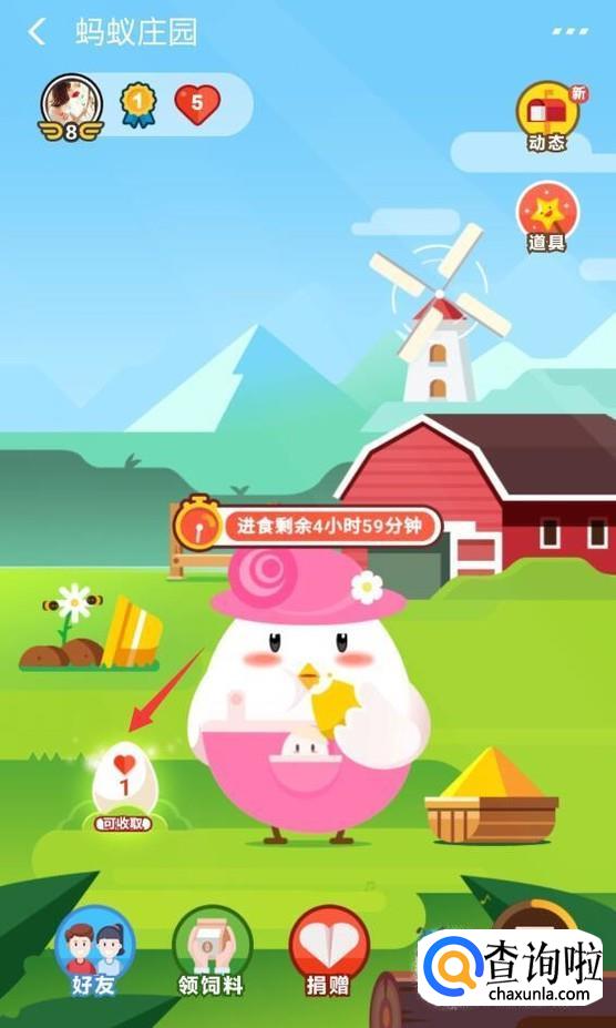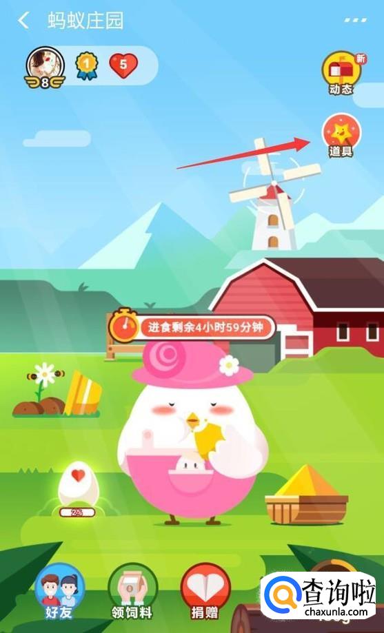 单击蚂蚁庄园按钮后会进入到如图所示面板,此时我们单击右上角的“道具”按钮。