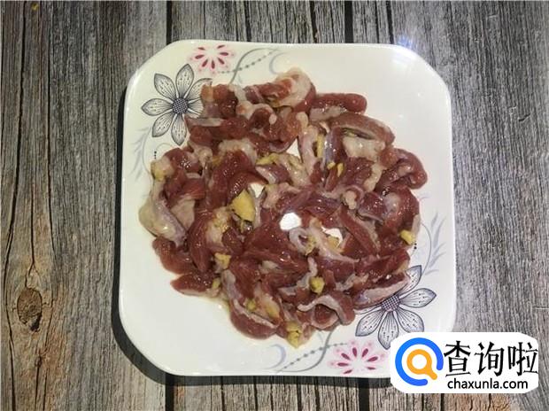 牛肉用流动的水清洗几遍,去掉血水,然后切成薄片,再加入适量的花生油、酱油、蚝油、生粉、姜葱沫,一起搅拌均匀,腌制一会。