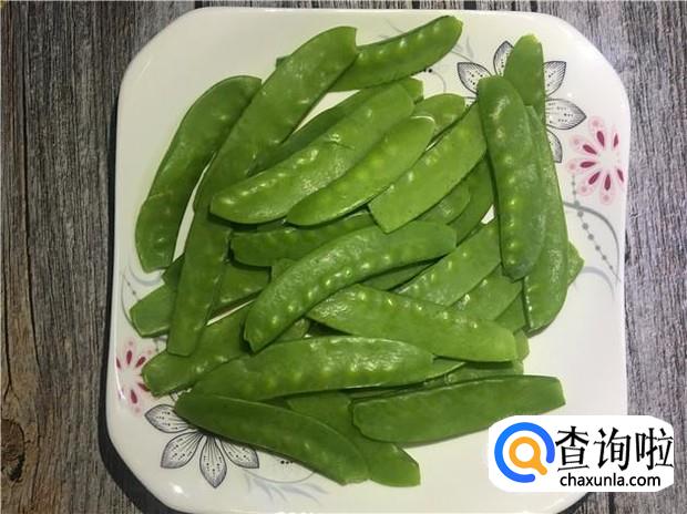 荷兰豆撕掉两头的根茎,清洗干净,沥干水分,备用。