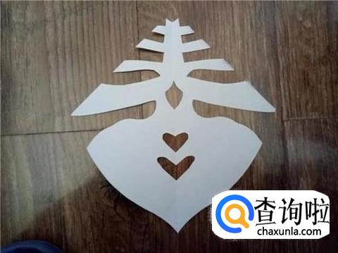 之后我们用剪刀,将多余的地方剪掉,即可将心形春字剪出来,如图所示。