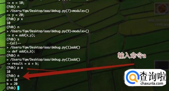 在终端里输入小写字母a,a就是英文单词arguments(参数)的缩写,会打印显示函数所有变量的值。
