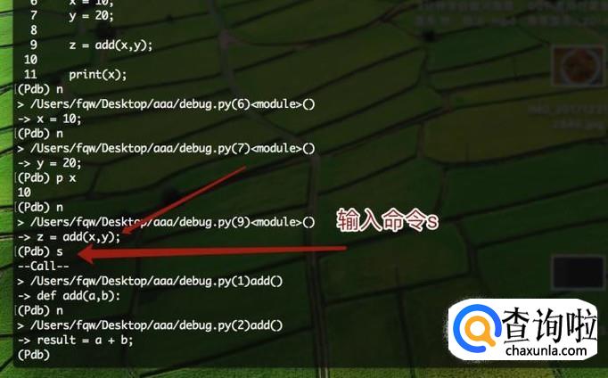 在终端里输入小写字母s,s就是英文单词s的缩写,进入函数内部调试。