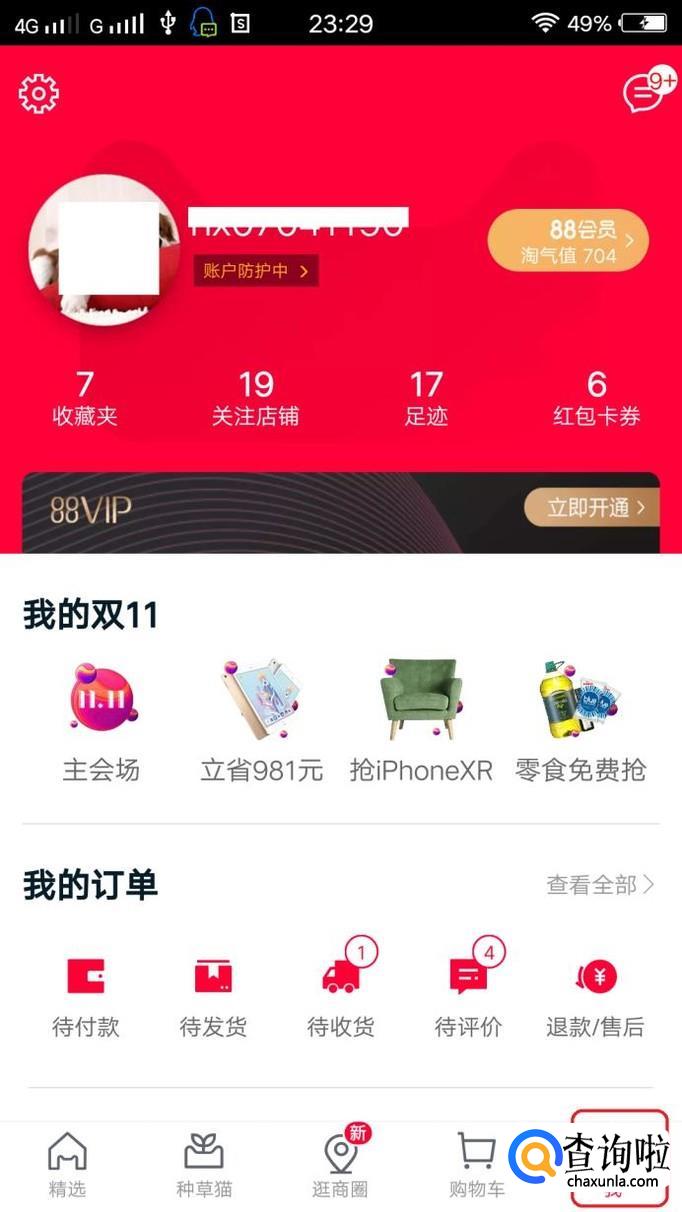 首先,我们打开手机天猫app,点击右下角“我”,登录(支付宝可以直接登录)进入个人页面。