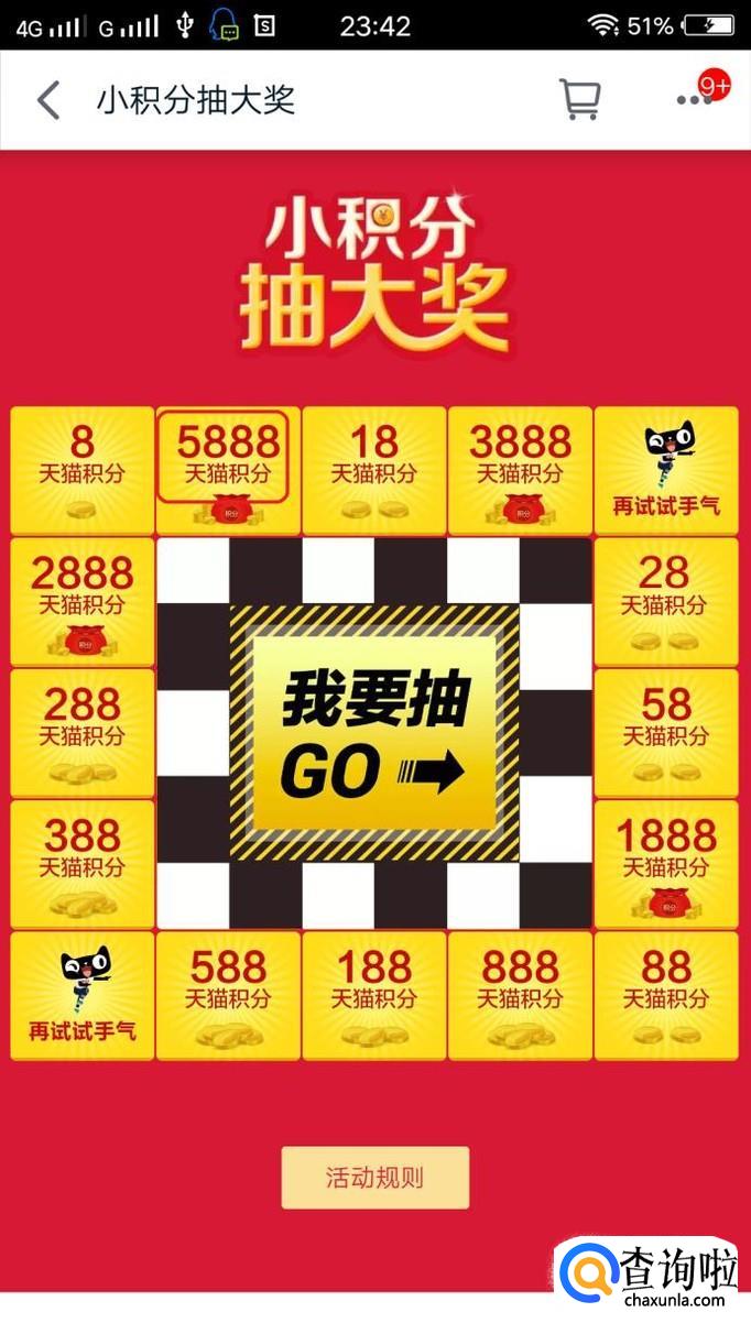 积分还可以玩抽奖游戏,每次抽奖10积分,最高能得5888积分。