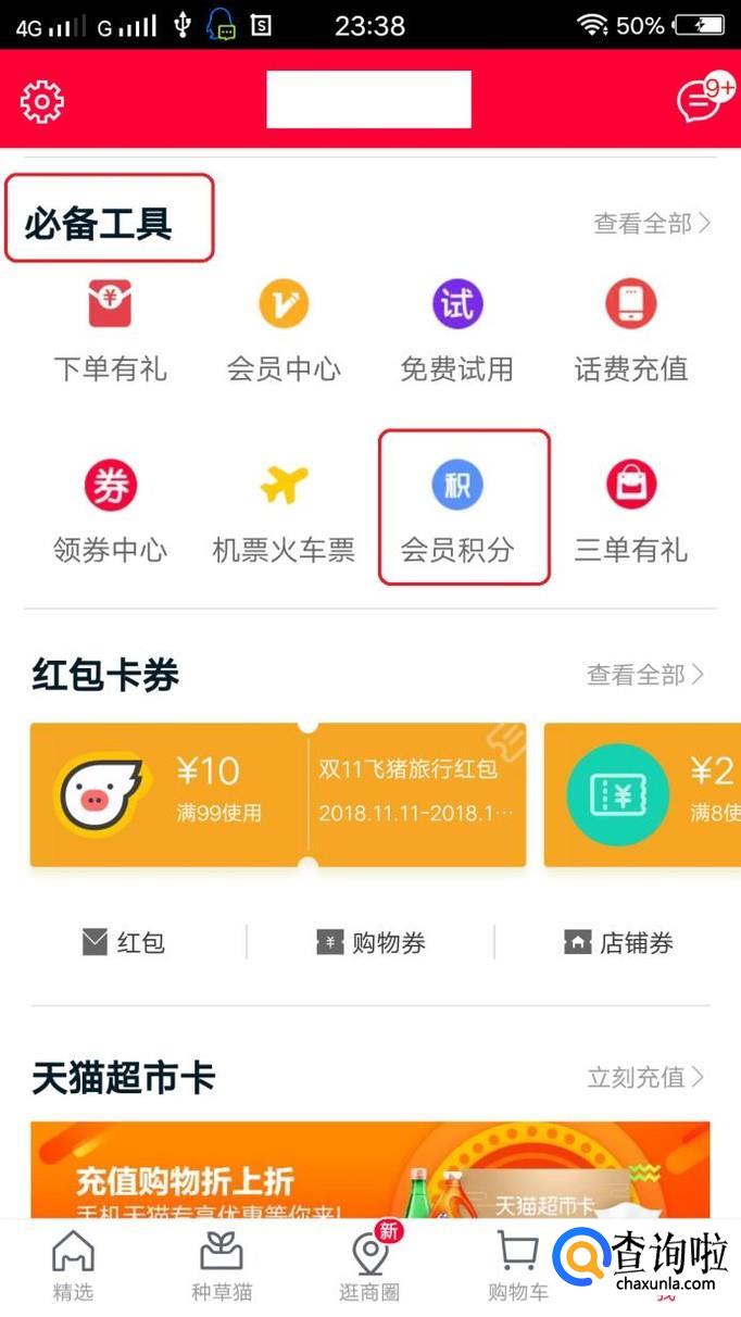 在个人页面往下滑动,就能在“必备工具”中看到“会员积分”,我们点击进入。