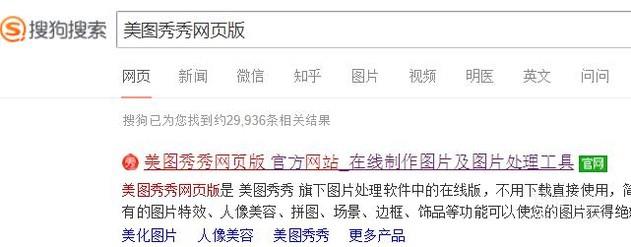 首先在搜狗浏览器中输入美图秀秀网页版并点击回车键,如下图所示。