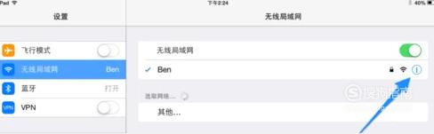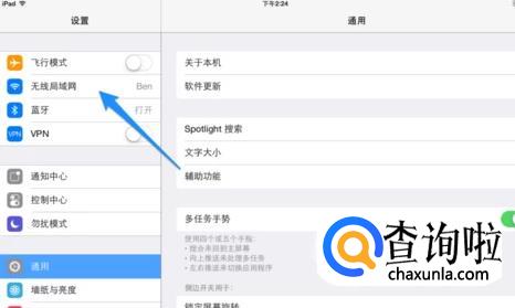 在设置列表中点击“无线局域网”一栏,如图所示。