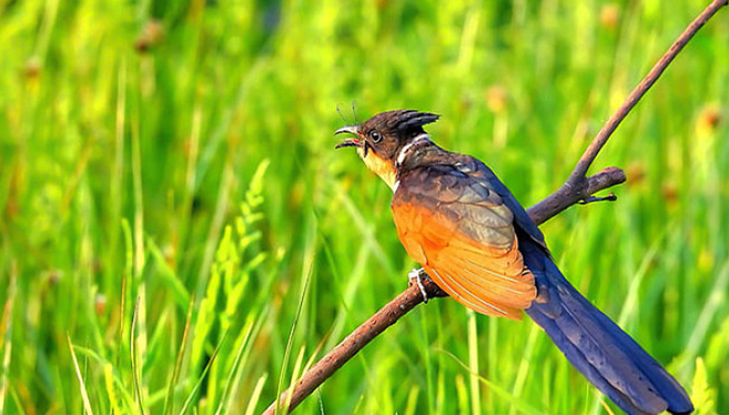 布谷鸟别名杜鹃鸟,它是吉祥鸟也是催春鸟。大杜鹃叫声似“布谷、布谷”,所以又叫布谷鸟。布谷鸟被视为报春鸟、吉祥鸟、幸福鸟,它的叫声就代表春天、希望、幸福。