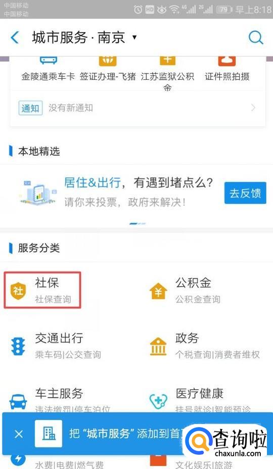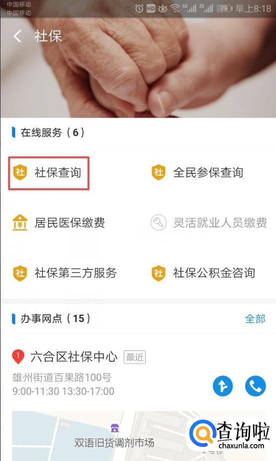 弹出的界面,我们点击社保查询;