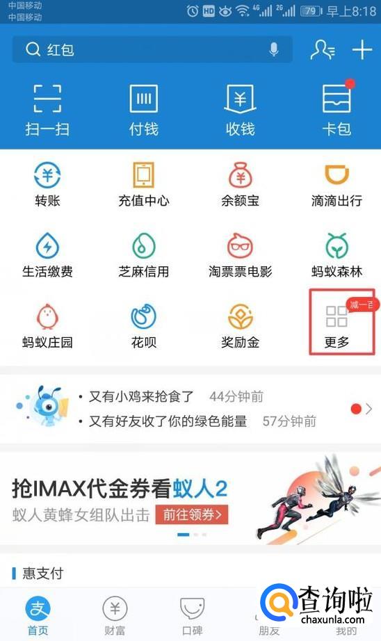 进入支付宝之后,我们点击更多;