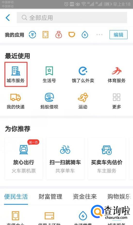 弹出的界面,我们点击城市服务;