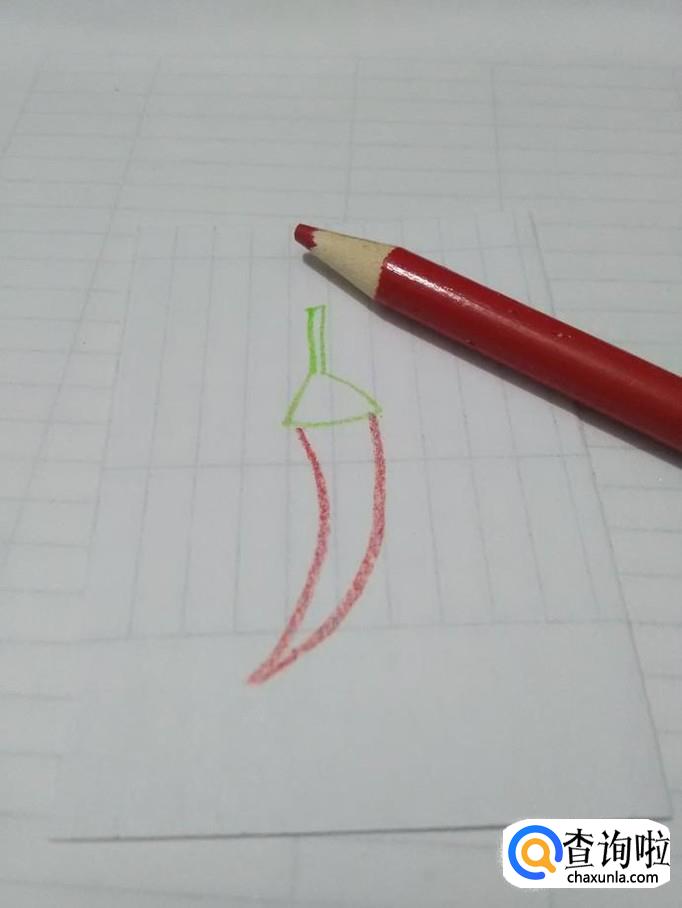画尖辣椒,要画出果柄、果蒂和果实部分,下面就来画尖辣椒。