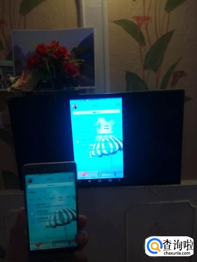 我们可以看到手机上的屏幕,被同步显示在电视上。