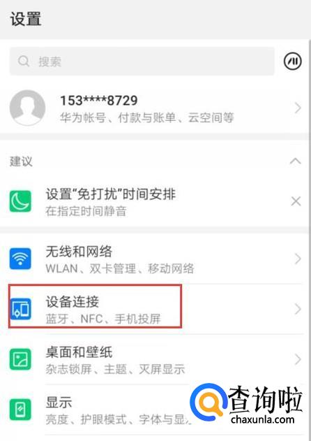 手机上点开设置,选择设备连接。