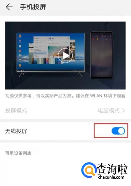 打开无线投屏,会搜索可投屏的设备。