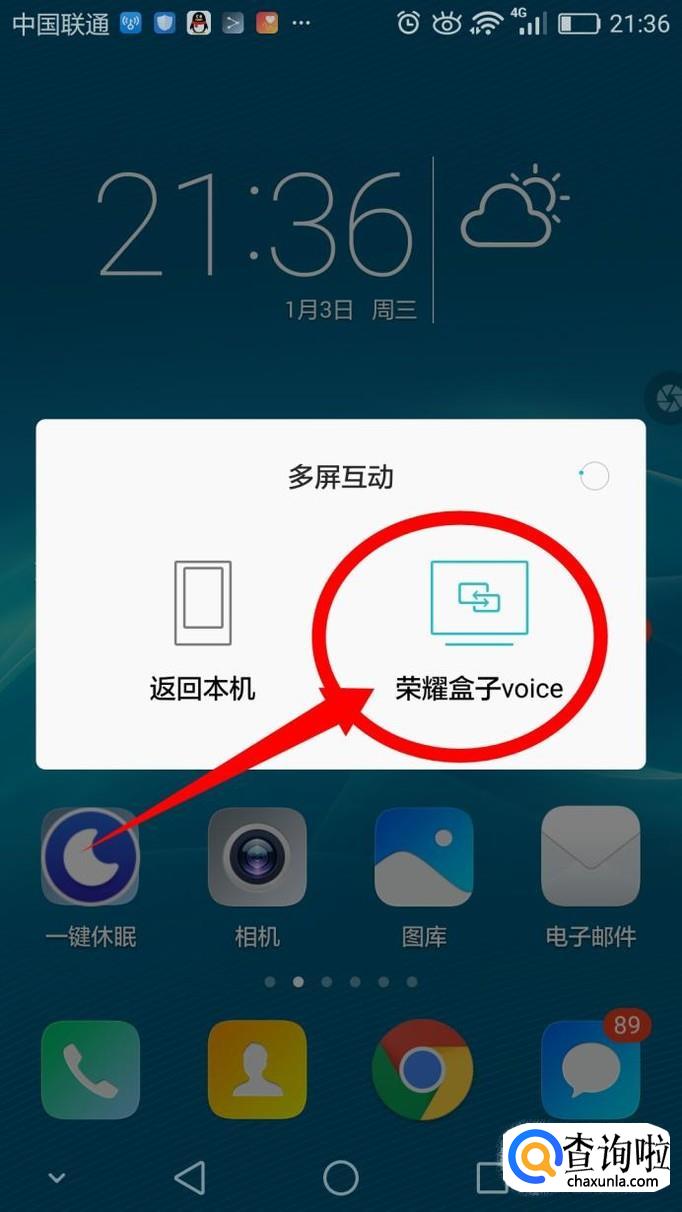 在多屏互动上,选择电视的盒子进行投屏操作。