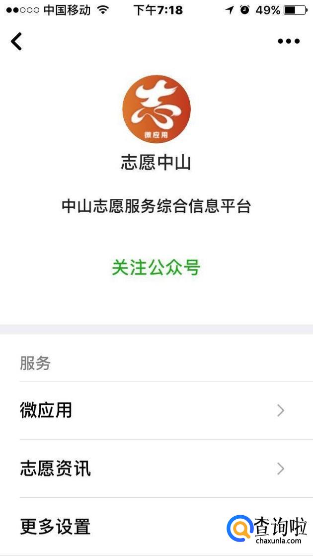参加中山志愿者活动其实很容易,只需要我们在手机上关注中山志愿者的微信公众号就可以找到报名入口。我们在公众号的首页里点击最下方菜单栏的“微应用”选项。