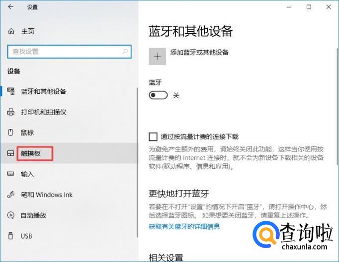 弹出的界面,我们点击触摸板;