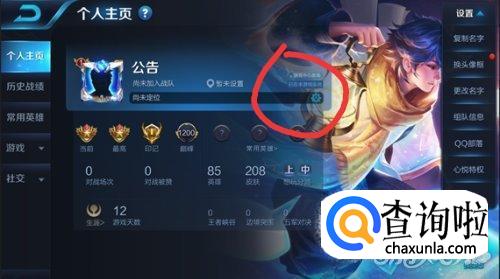 现在来到游戏,如果之前还没有设置的话,点击左上角的自己的头像图标,打开个人资料卡