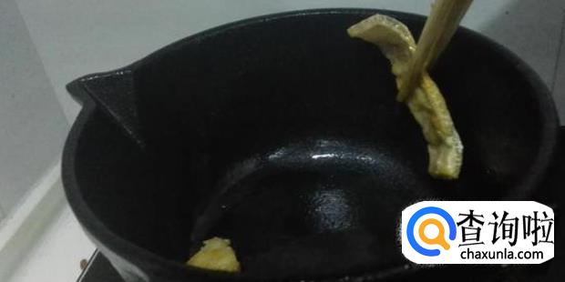 整锅移离灶火,倒去黑猪油,用厨用纸擦干净,热水净锅揩干。
