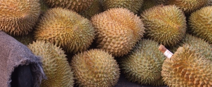 2、看颜色,如果想要挑选到美味的榴莲,还能看它的颜色,最好是选择土黄色,当然金黄色也是挺不错的,这两个颜色说明榴莲已经非常成熟了,要是选择绿色的,这就意味着榴莲还没熟,不过颜色也不能发黑,要是发黑的话就意味着榴莲太熟了。