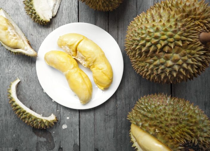 6、闻气味,如果想要挑选到美味的榴莲,还能去闻它的气味,要是榴莲的气味比较浓烈,那么就意味着榴莲的味道不会太差,当然要是闻味道的时候,发现有股酒精的味道,这个时候需要注意,最好不要购买,很有可能这个榴莲已经出现变质的情况。