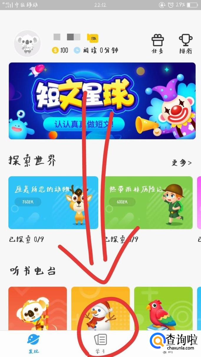 在考拉阅读软件首页,点击最下方“学习”图标。