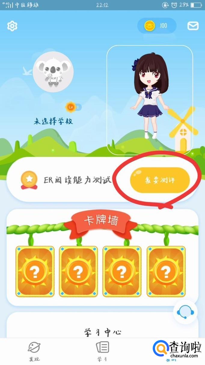 进入个人信息界面,找到“阅读能力测评”,点击“我要测评”。