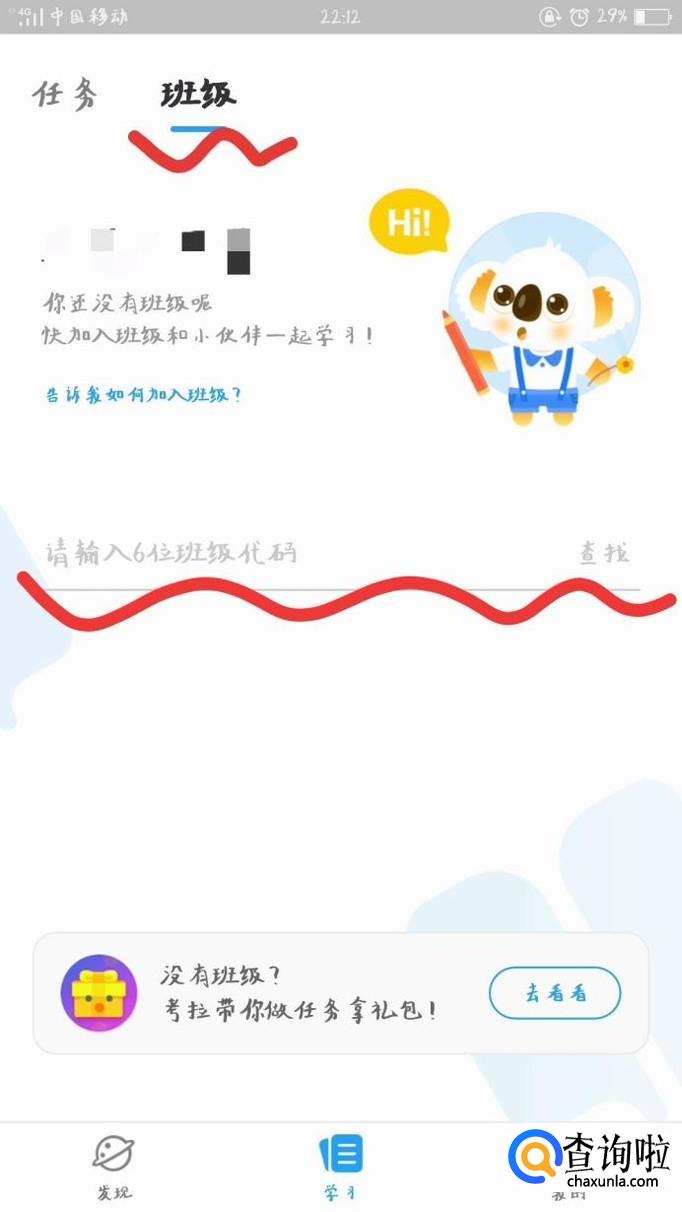 找到“班级”,在下方填写班级代码,加入班级。