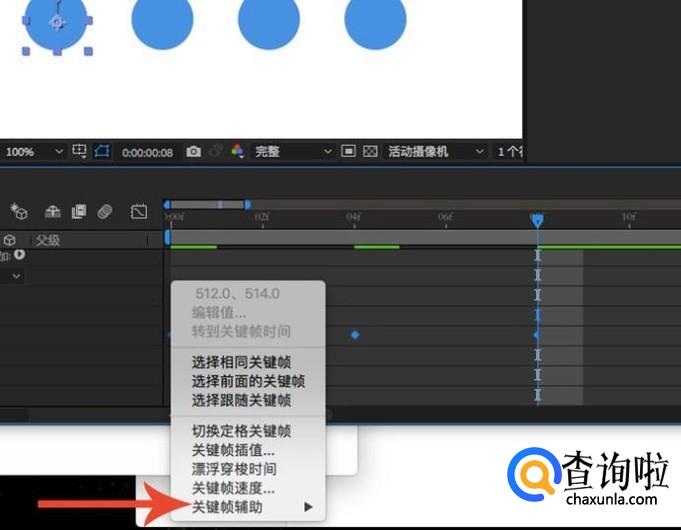 框选所有关键帧,右键关键帧后点击“关键帧辅助”,在里边给关键帧添加“缓动”辅助。