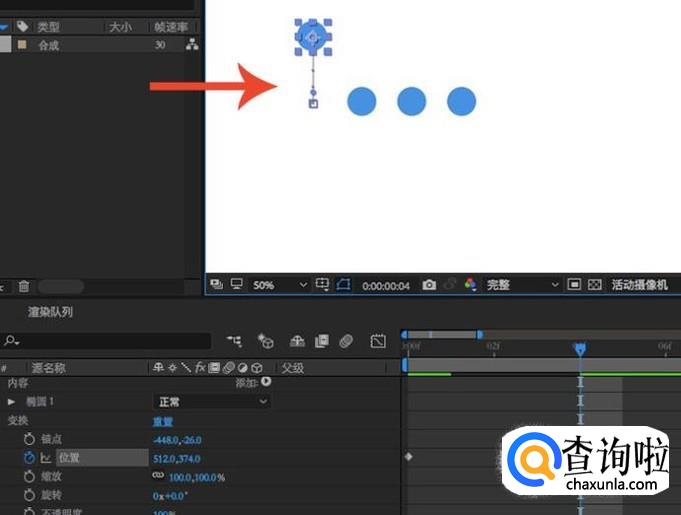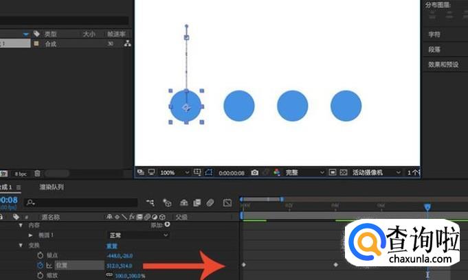最后复制左侧圆的关键帧,算好相应的运动位置之后ctrl+v粘贴在别个图层中,这样就做好了一个简单的加载动效。