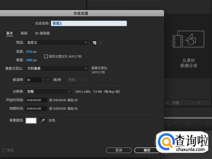 打开电脑中的AE软件,ctrl+n新建一个合成,合成的帧速率一般都是30f,宽高自定。
