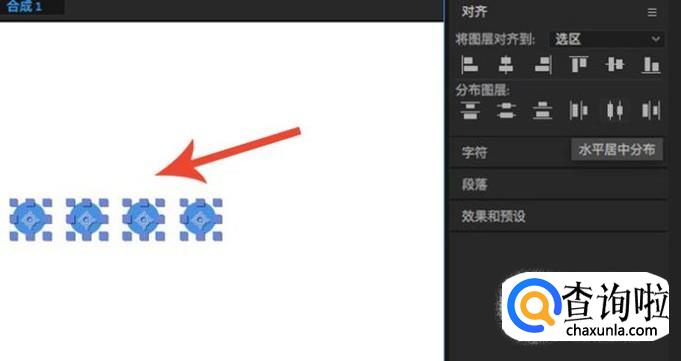 选择4个圆形,将位置距离进行适当调整,直接使用分布图层中的“水平居中分布”也可以进行对齐排列。