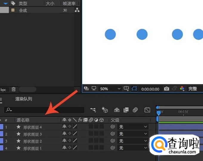 接着将这个圆ctrl+c/v复制3个出来,要保证每个圆都是在不同的图层,一共有4个形状图层。