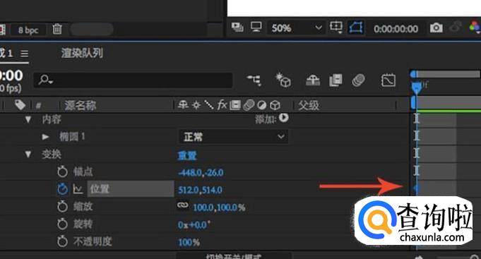 创建合成之后,在画布上我们先绘制一个椭圆,然后用“锚点工具”将圆的中心店移动到圆心。