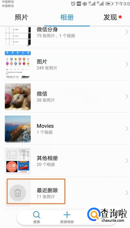 进入图库之后,我们下拉界面,找到最近删除,这个里面就有我们误删的照片;