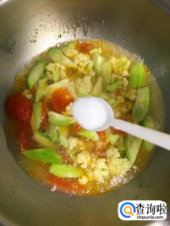继续大火烧煮,煮至丝瓜变软,加入1小勺盐调味。